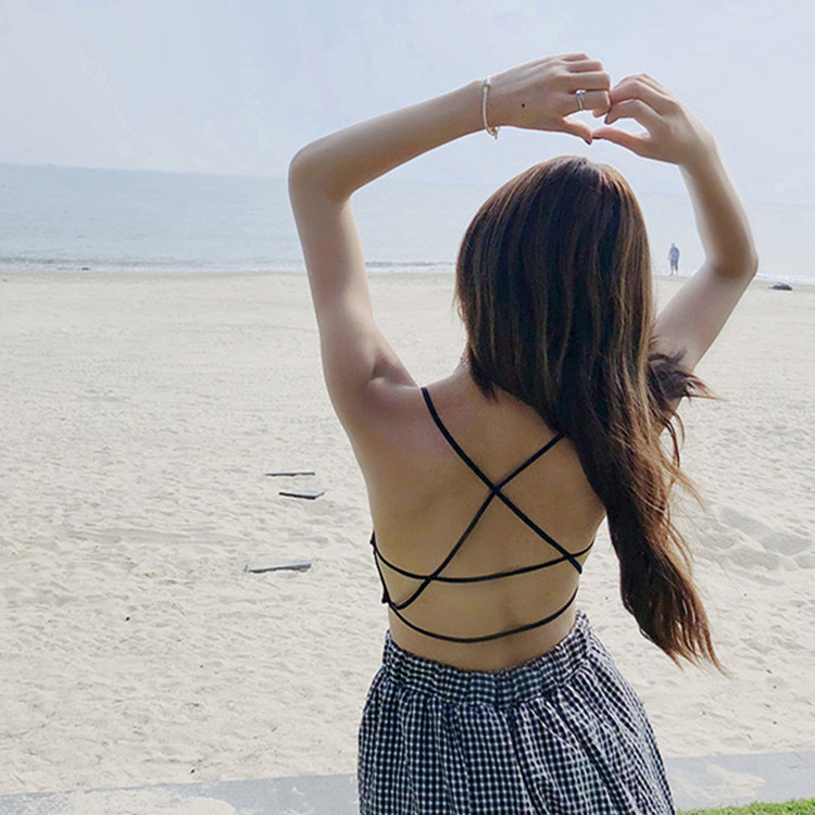 Sexy cross-beautiful wrapped chest with bottom hanging vest with steel-free circle, bra and chest mat