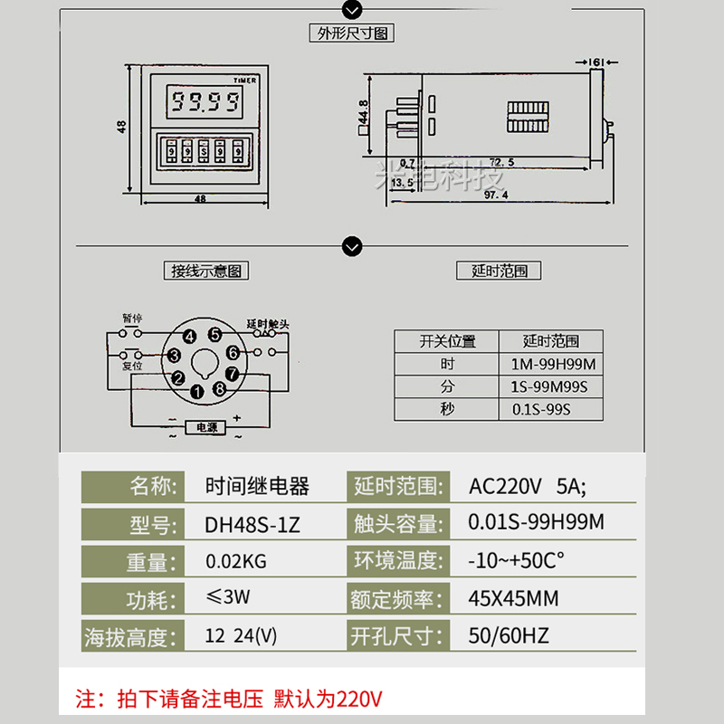Digital display time-lapse relay DH48S-1Z high-precision send base warranty for five years 220V 24V 380V