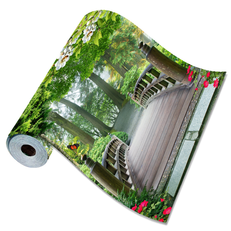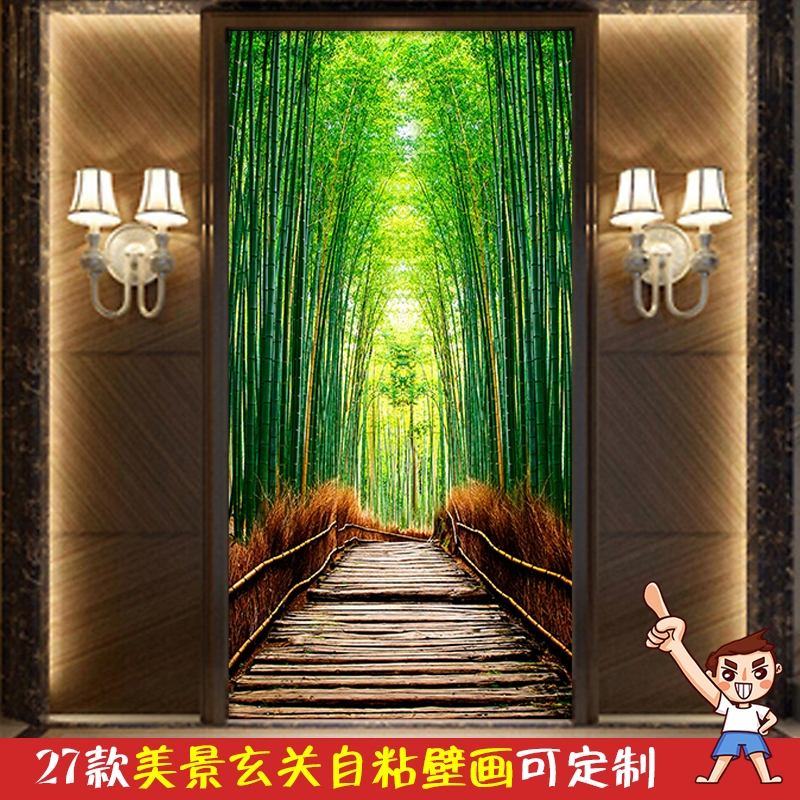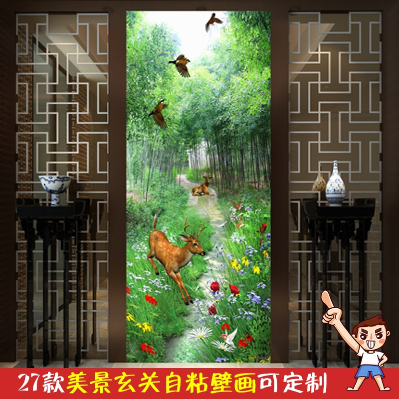 Genguan Custom Self-adhesive painting glass wall sticker 3D Solid simulation forest scenic aisle corridor Vertical version wallpaper