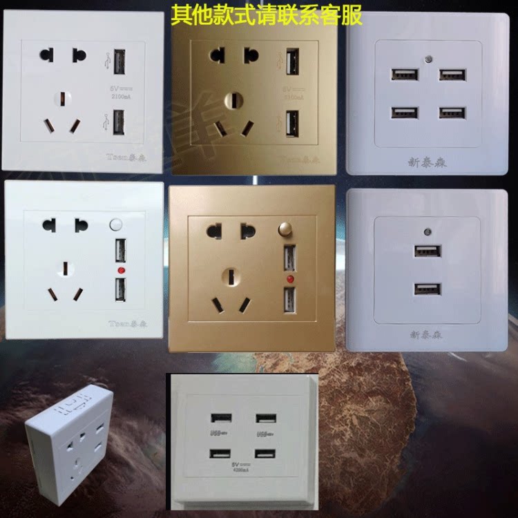 Concealed white five-hole double USB concealed gold five-hole double USB concealed white five-hole with switch Dual USB concealed gold five-hole with switch Dual USB4usb220V Concealed 2US