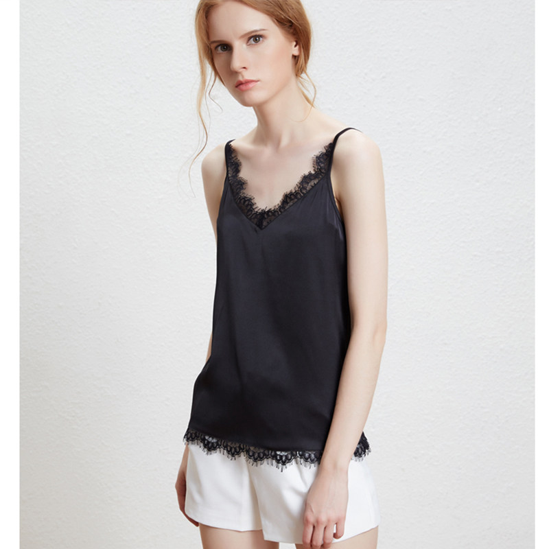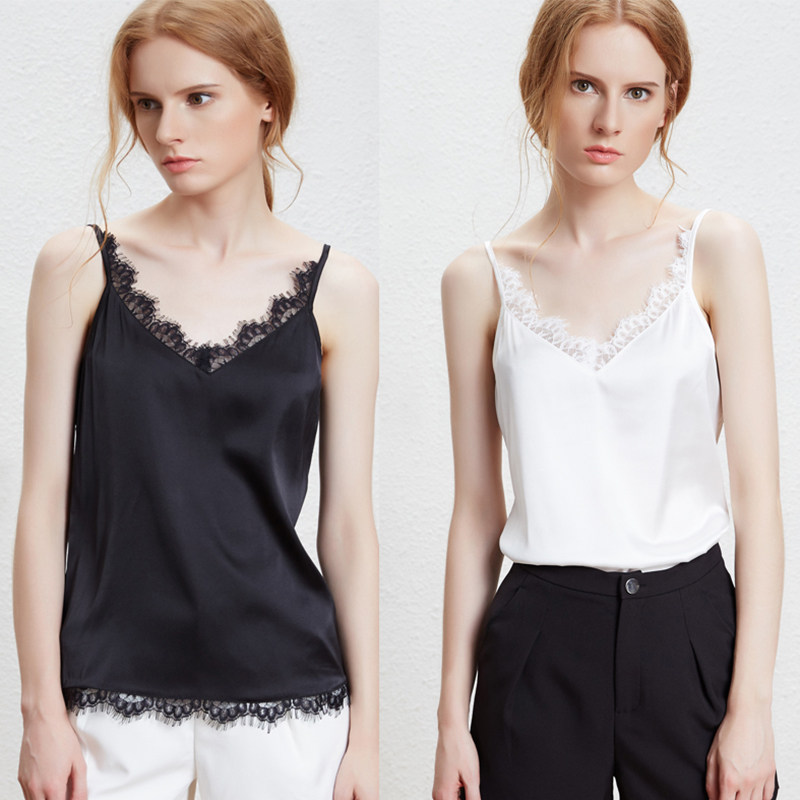 (100% silk) silk camisole women's summer regular ice silk inside and outside wear short sexy bottoming shirt
