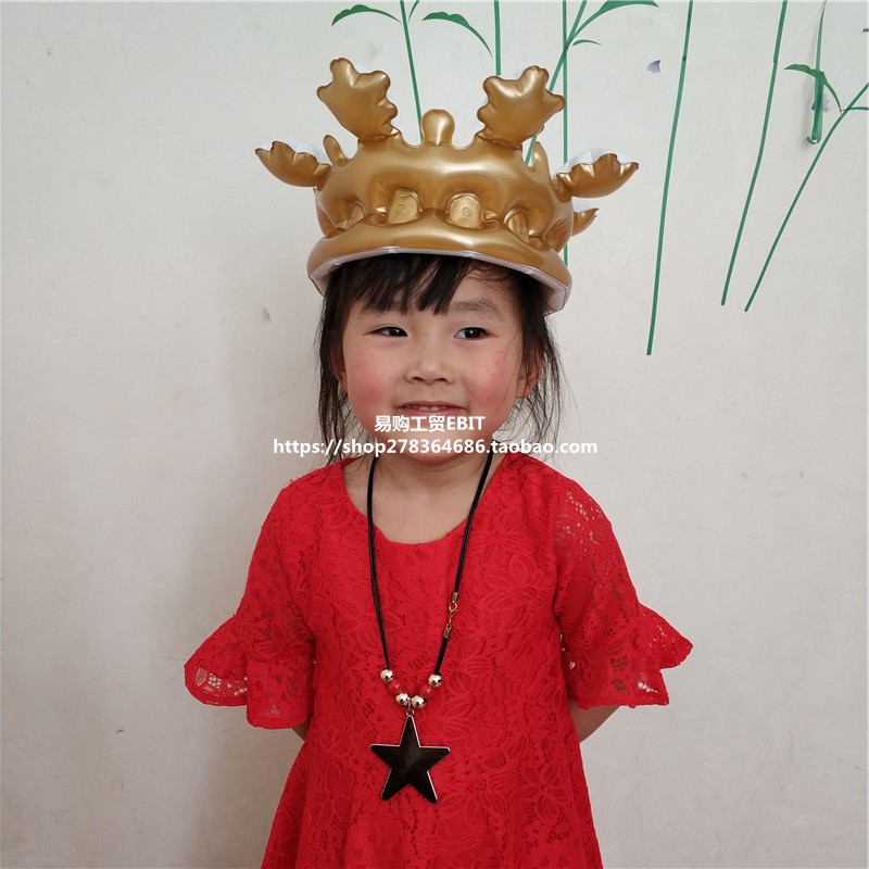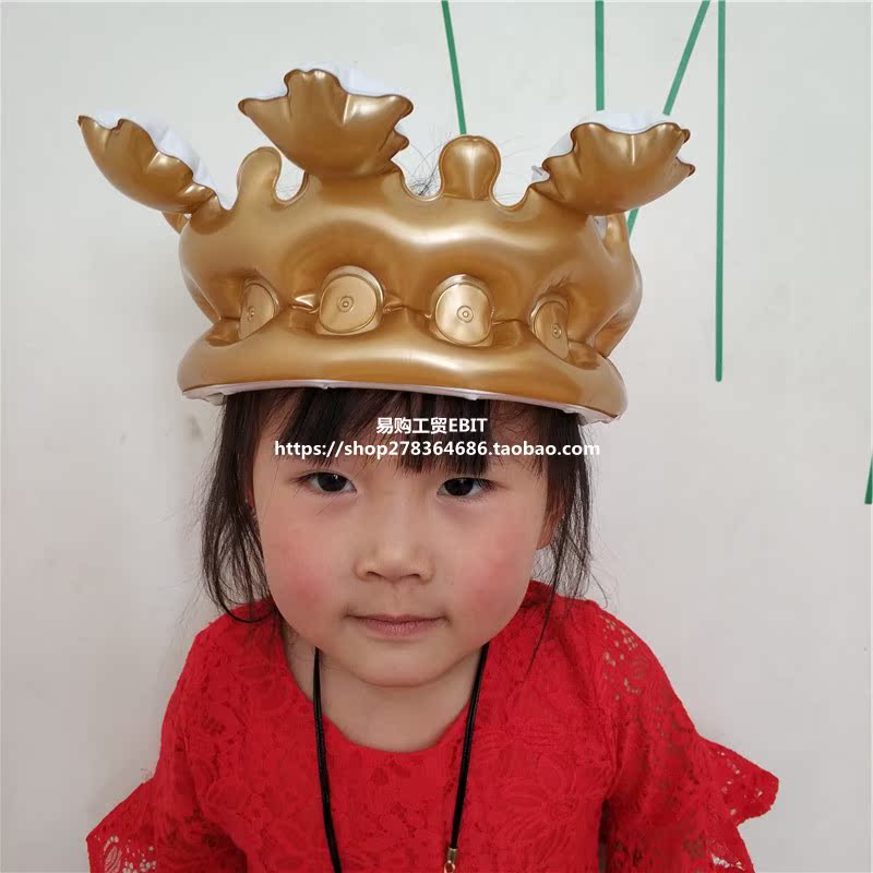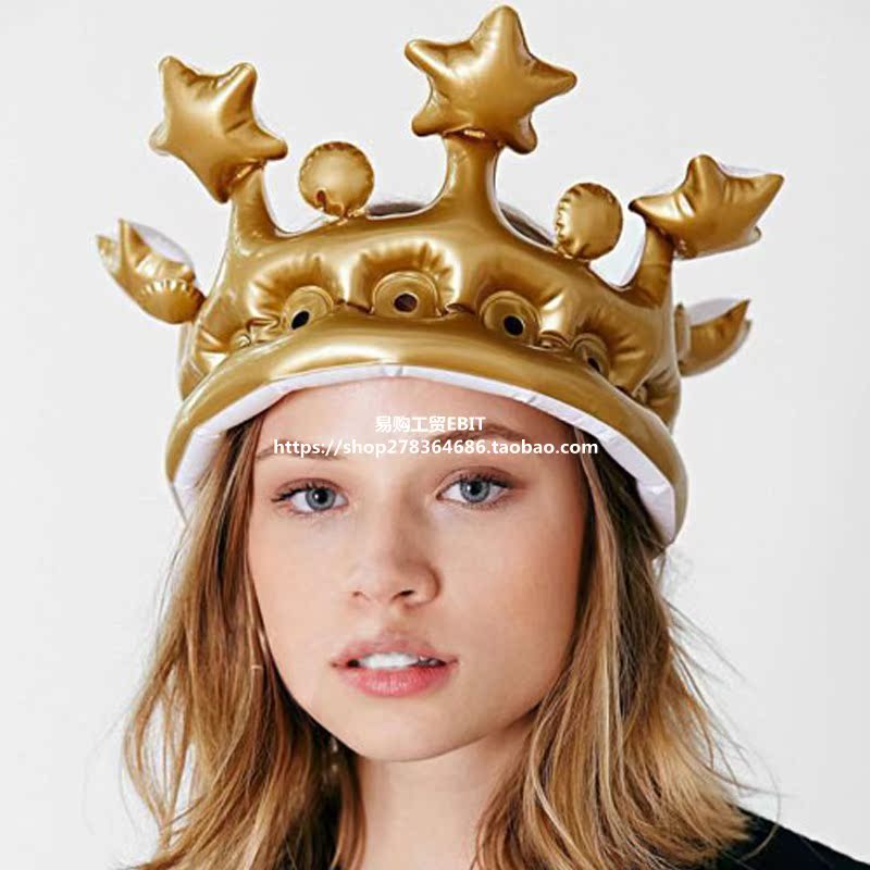 Adult Children Blow Crown Female Crown Hat Crown Hat Accessories Dress Up Inflatable Toy Kindergarten Bar Makeup Props