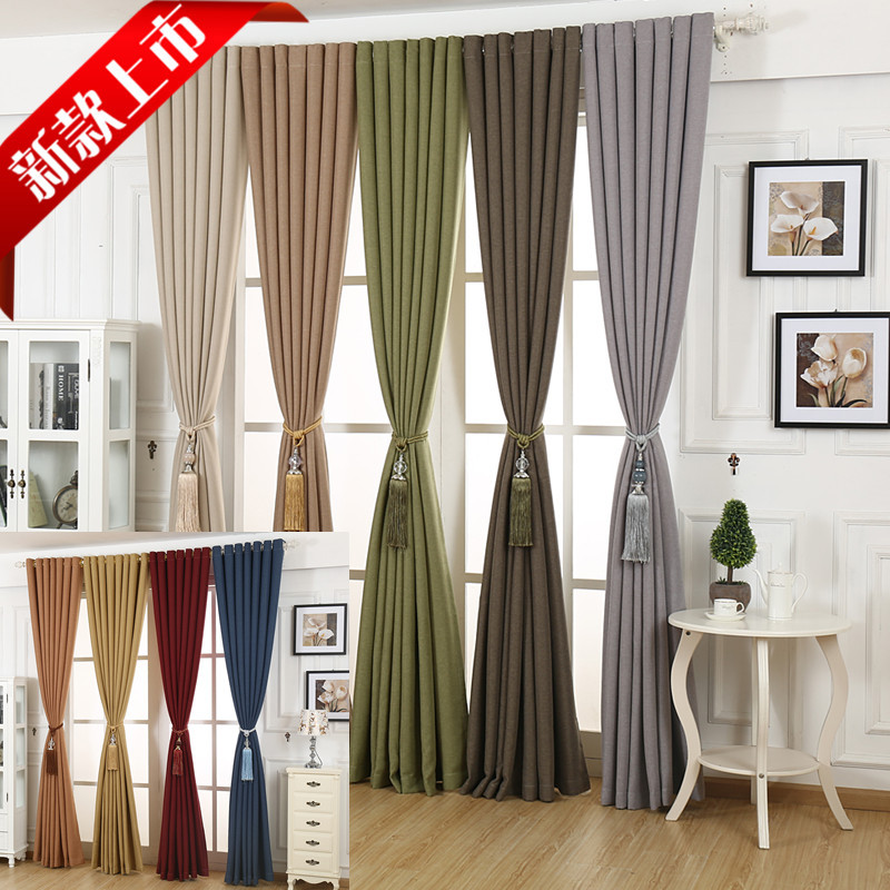 Summer Thickening Living Room Bedroom Linen Cotton Linen Thermal Insulation Cloth Finished Custom Shading Curtain Brief Brief Modern Pure Color