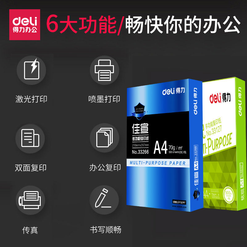 Deli Mingrui A4 paper 70 grams a box of 5 packs of 2500 sheets(specification 210*297MM) Deli Jiaxuan A4 paper 70 grams a box of 5 packs of 2500 sheets(specification 210 * 297MM) Deli Jiaxuan A4 paper 70 grams a box of 5 packs of 2500 sheets (specification 210 * 297MM)