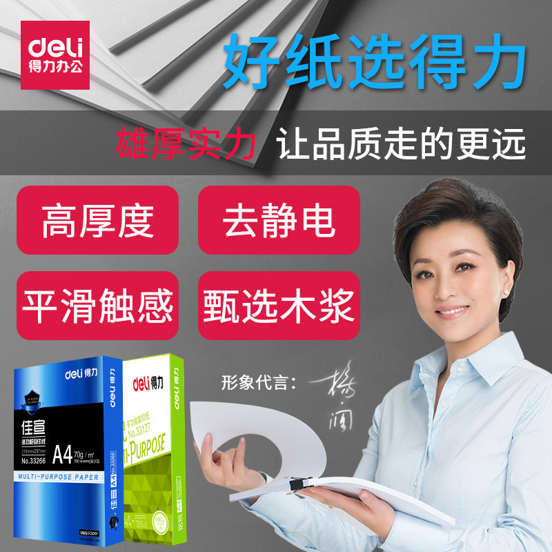 Deli A4 paper printing copy paper Office paper 70 grams 80 grams of white paper shoulder bag 500 sheets of the whole box 5 packaging a3 paper 8 packaging office supplies school test paper papyrus manuscript paper wholesale