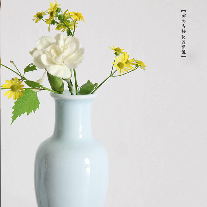Zen vase Shadow blue and white vase Plum bottle Jade net bottle Guanyin bottle Jingdezhen home decoration ceramic new Chinese vase