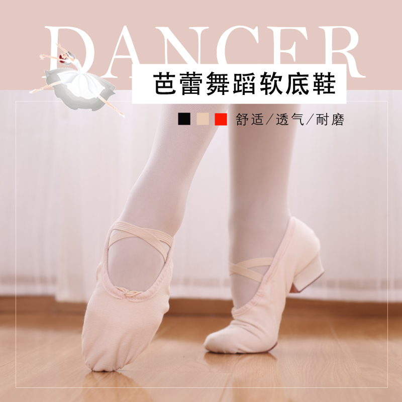 Ballet practice shoes teacher shoes canvas dance shoes adult women's soft sole with heel shape shoes folk dance two-soled shoes