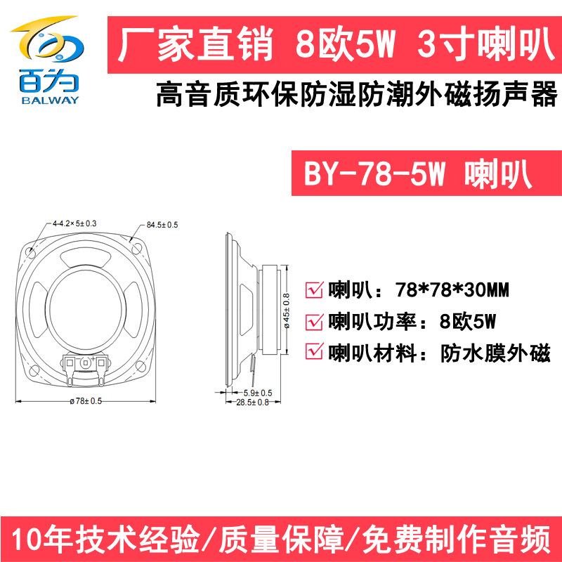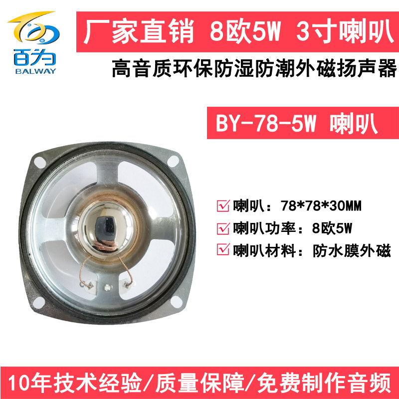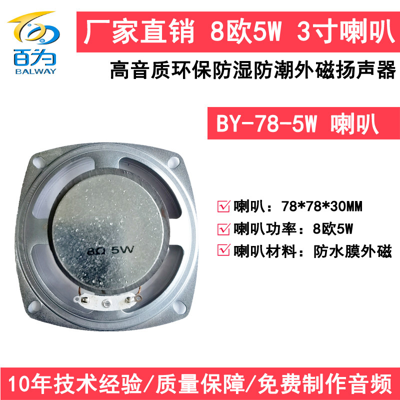 Manufacturer Direct sale environmentally friendly passive sound wall-mounted speaker 78MM waterproof and moisture-proof housing horn BY-806-5W