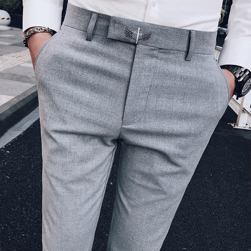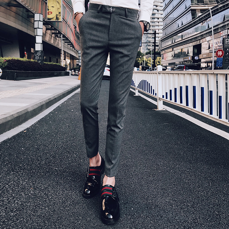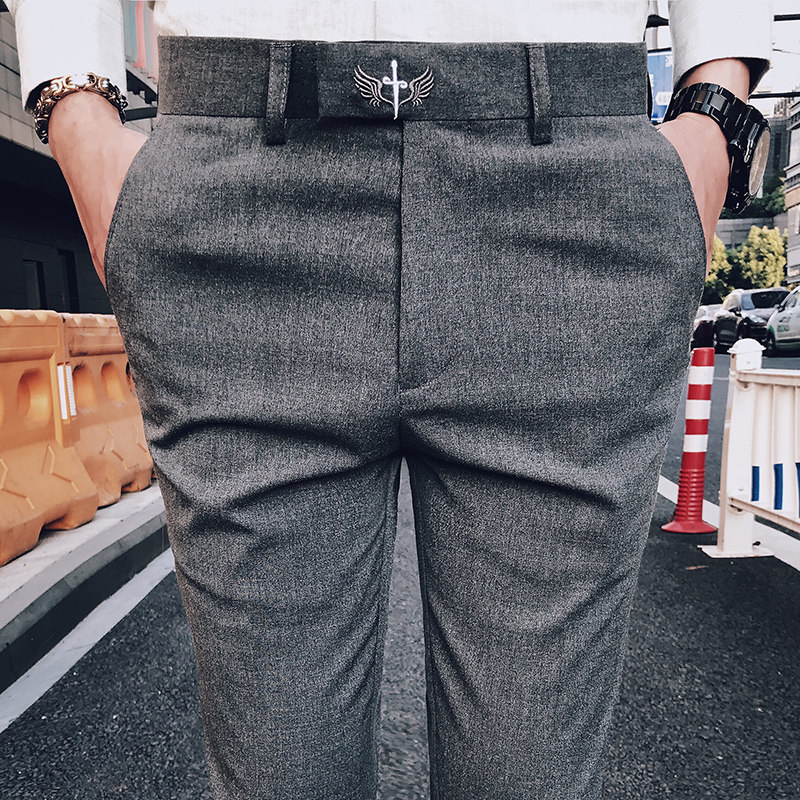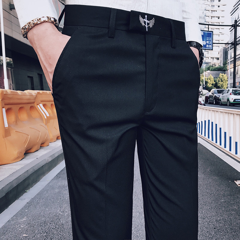 100 hitch 90% pants fit small western pants Korean version casual suit pants male trend elastic small foot suit pants damp