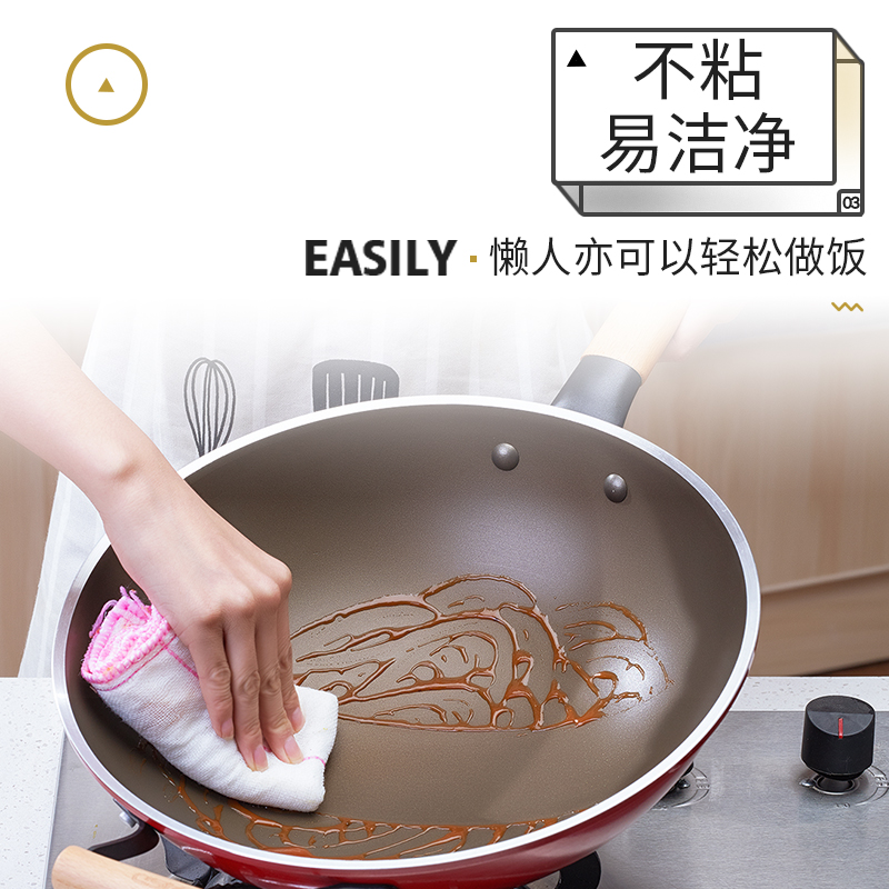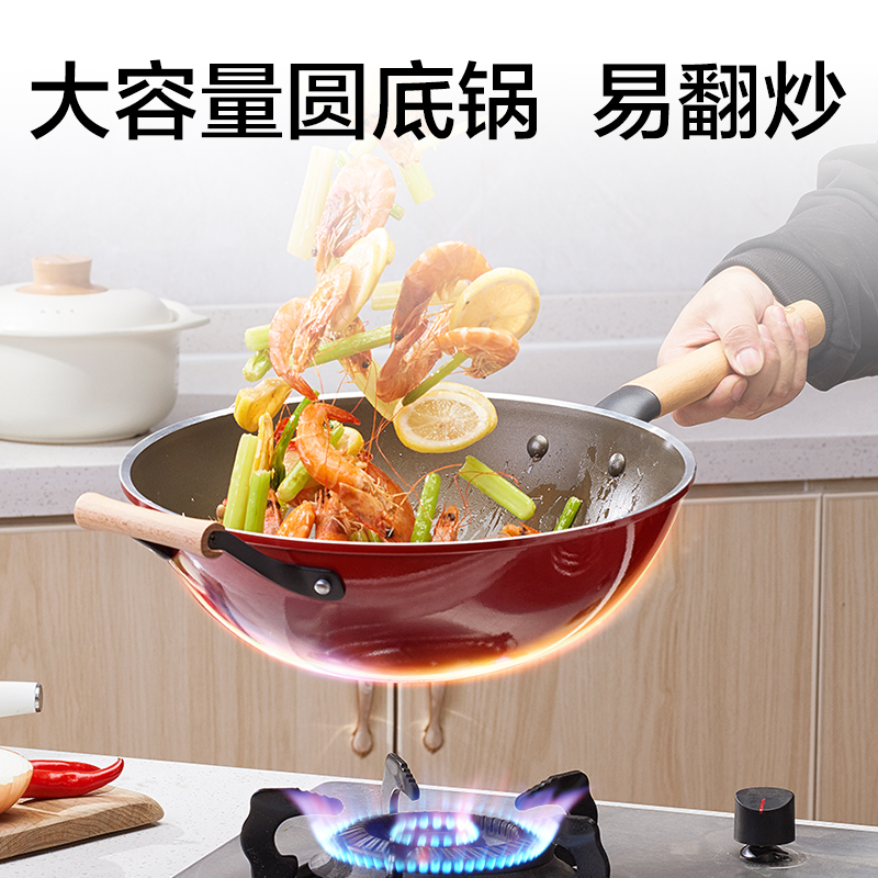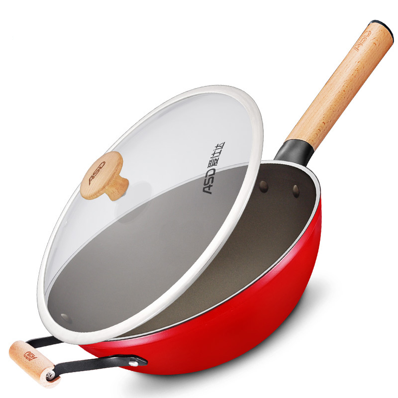 Ai Shida wok bright color non-stick wok less oily smoke large capacity easy to clean enamel household round bottom wok open fire