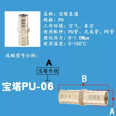 Copper pagoda connector double-headed direct gas nozzle docking pagoda two-way outer diameter 6 8 10 12 16 14 19mm
