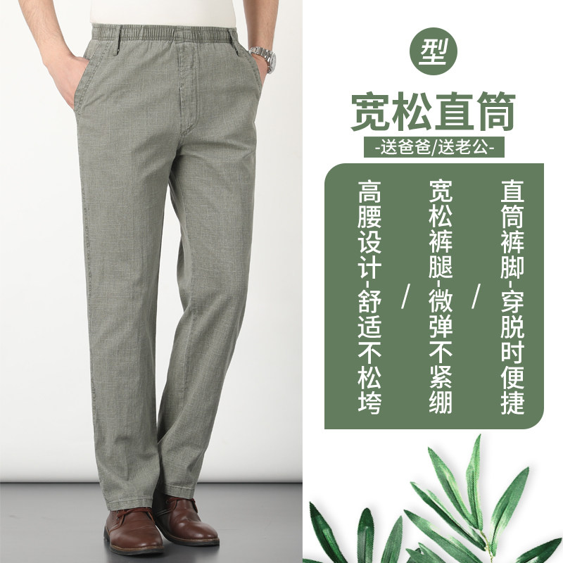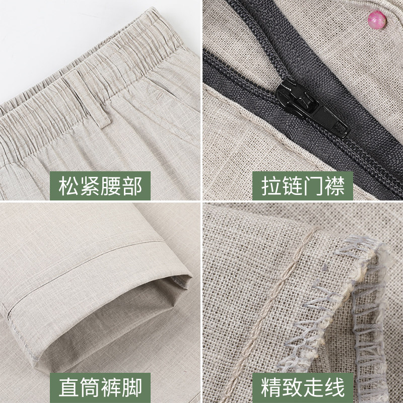 Cotton and hemp summer thin section middle-aged casual pants men's loose pants elastic waist old man grandpa linen dad men's pants
