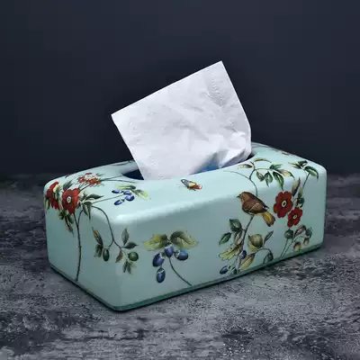Ceramic hand-painted tissue box Coffee table dining table decoration European-style luxury living room toilet paper box American decoration