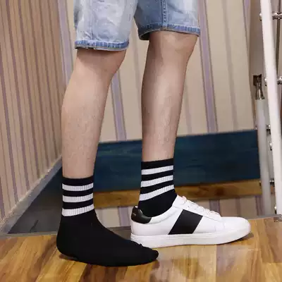 Men's Korean medium socks summer thin cotton three bars striped sports socks fashion trend student White socks