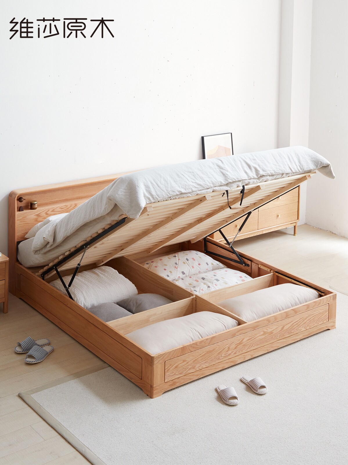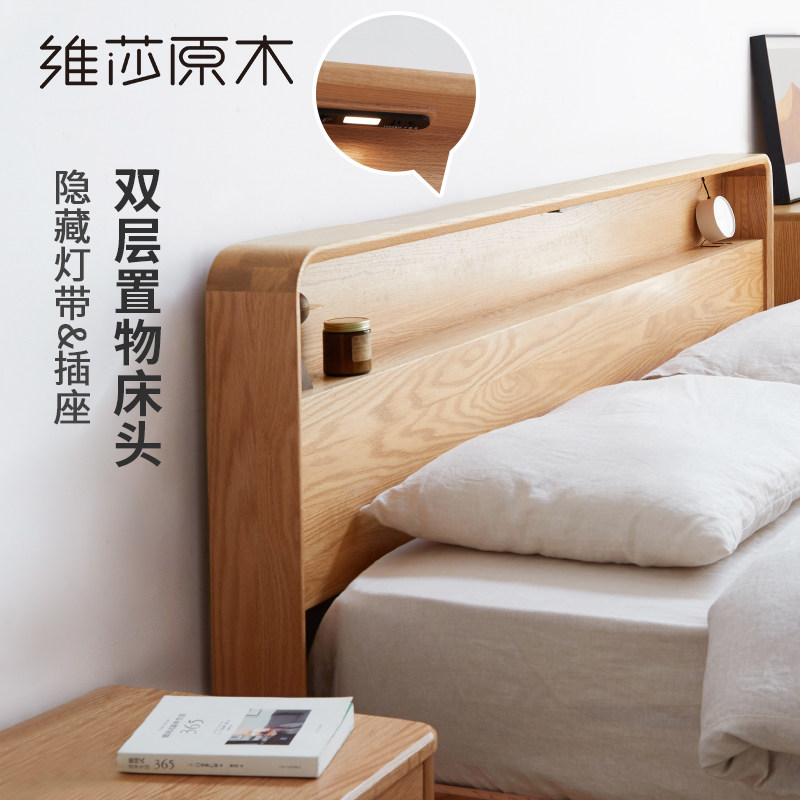 Visha solid wood box bed Japanese oak pressure rod socket Night light Nordic simple storage double multi-function bed