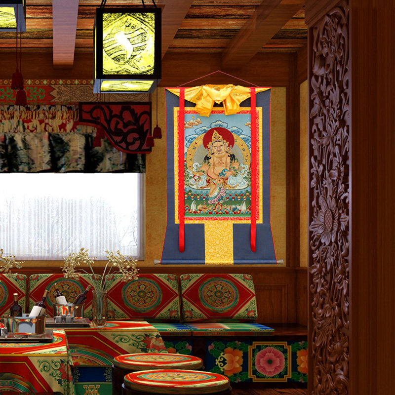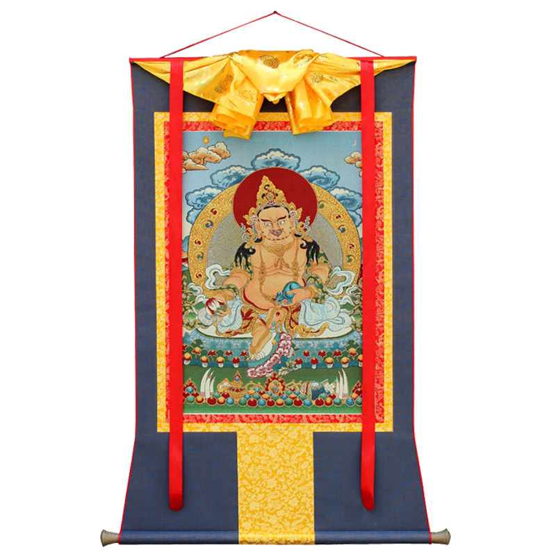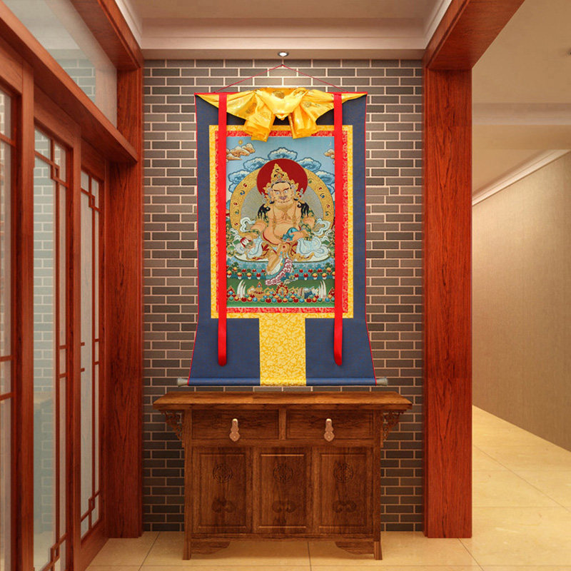 Huang Caishen Thangca painting Buddha portrait wall map porch decoration ethnic style embroidered cloth frame hand-painted Tibetan brocade Tantric
