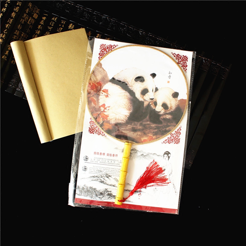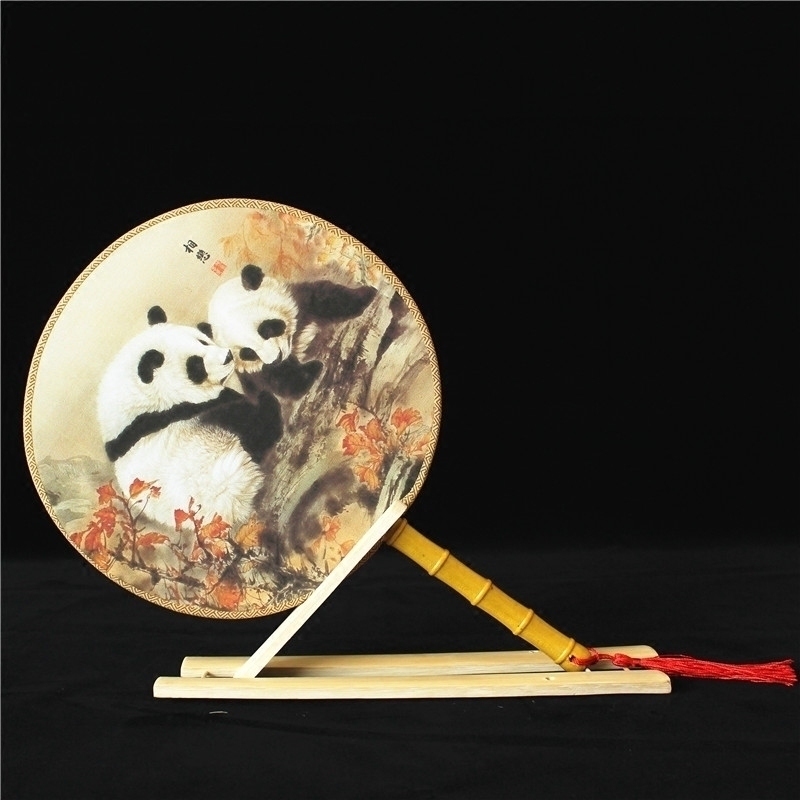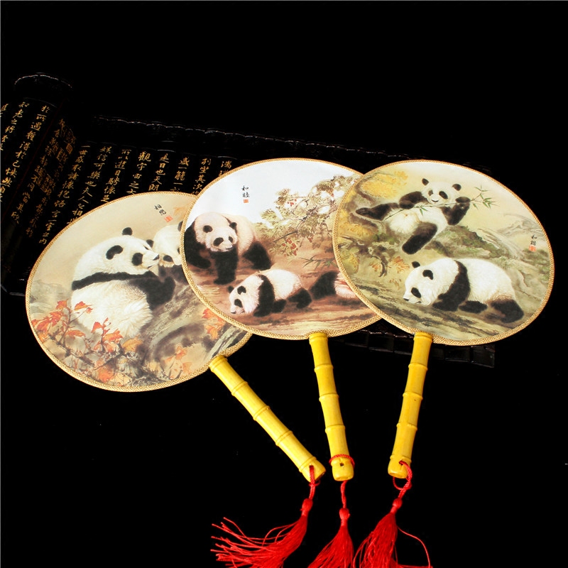 Giant Panda Original Bamboo Handmade Group Fan Round Fan Printed Fan Sends Foreign Friends Gift Items Round fan Sichuan souvenirs