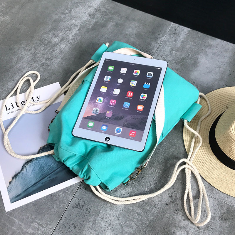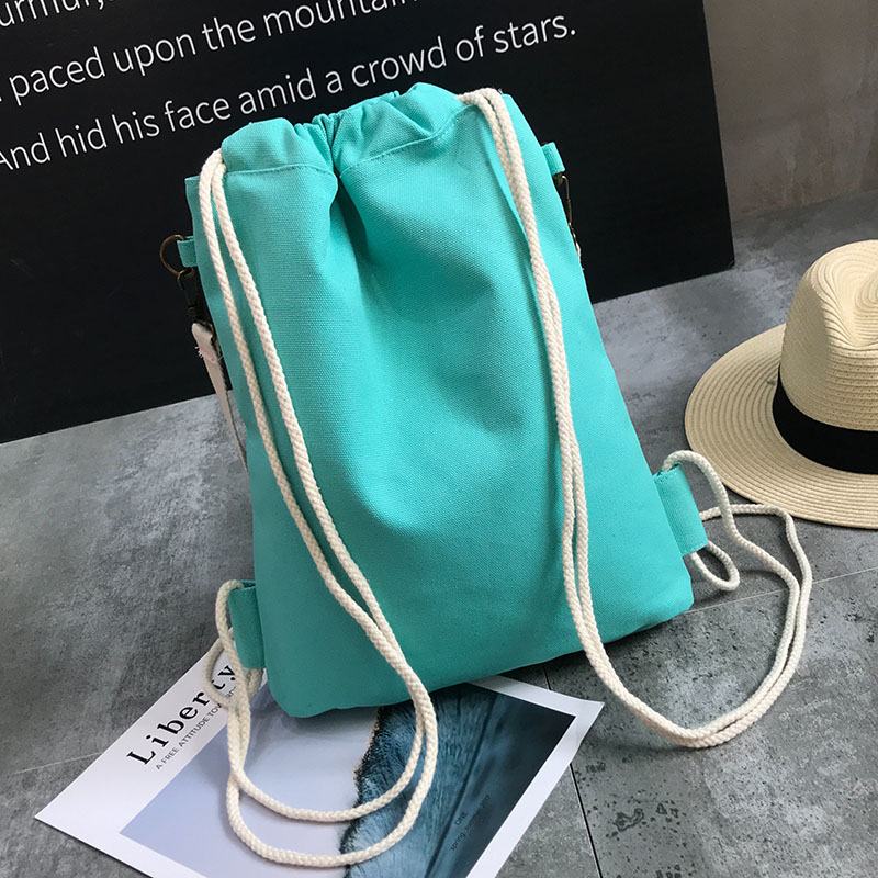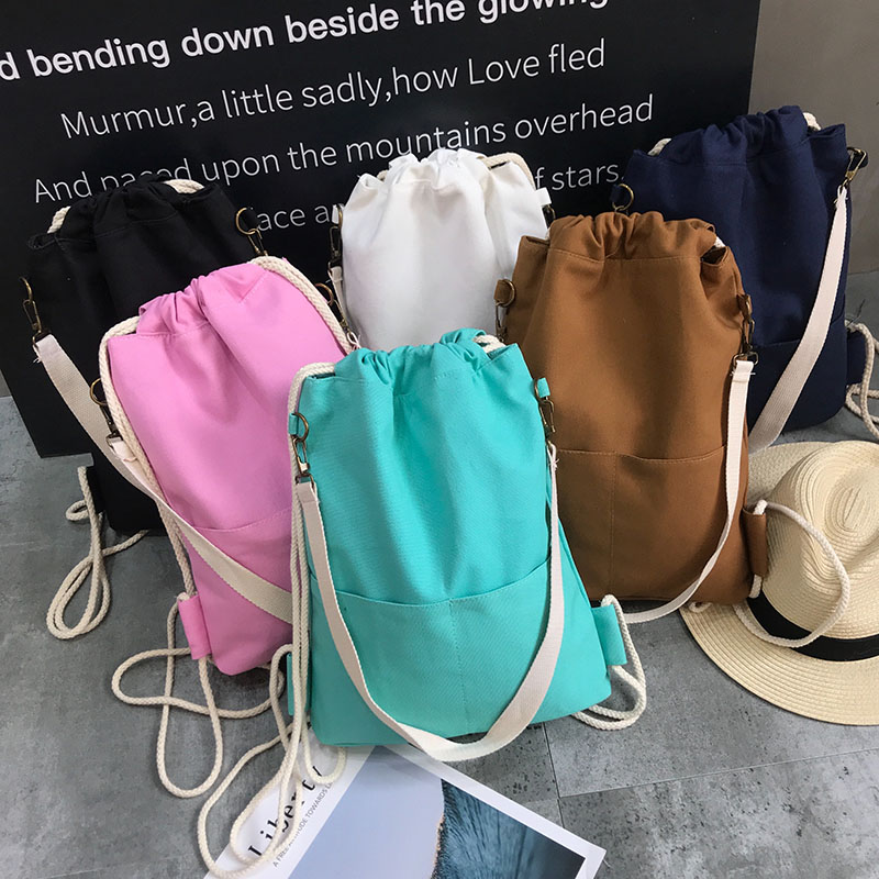Beam Pocket Draw Rope Double Shoulder Bag Female Canvas Brief Student Bag Men Sport Small Cloth Bag Bag South Korea Pull Rope Backpack-Taobao