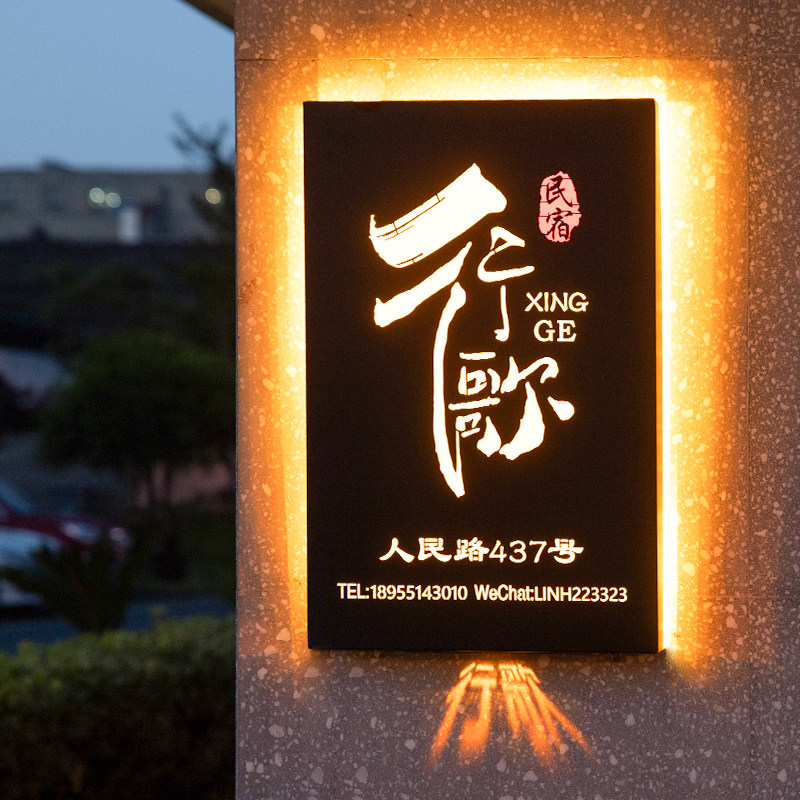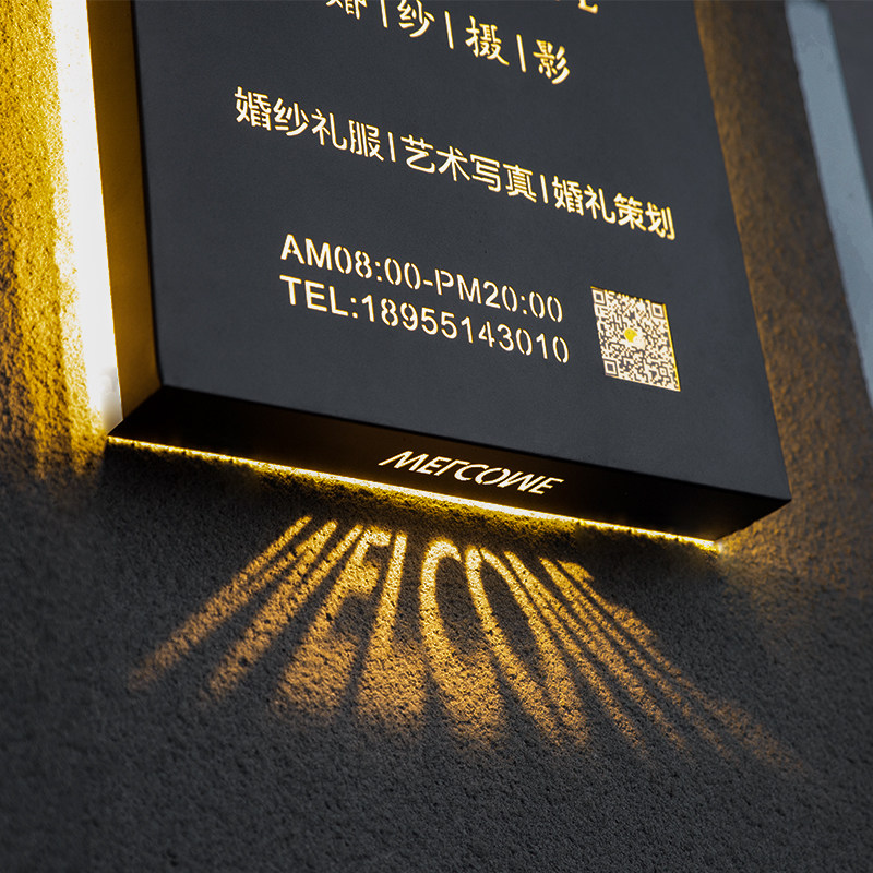 Creative hollow light box billboard door sign LED luminous word stainless steel wrought iron projection light box custom made