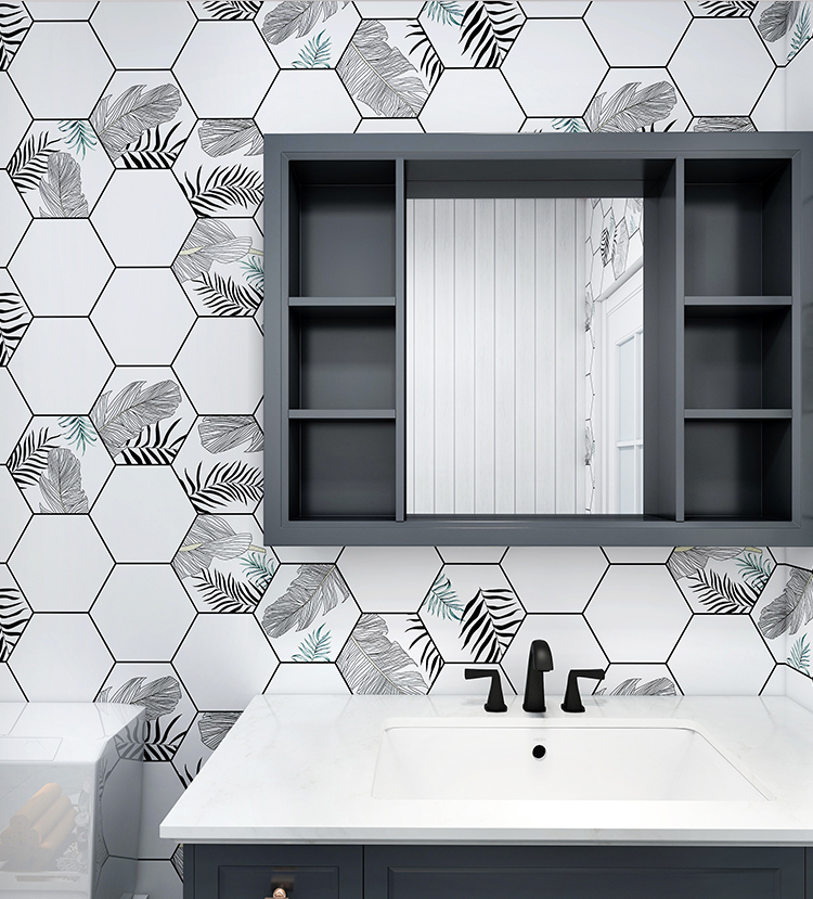 Makeup Room Nordic Style Tile Wall Trim Stickers Waterproof Self-Glued Bathroom Wallpaper Kitchen Anti-Oil Wall Sticker