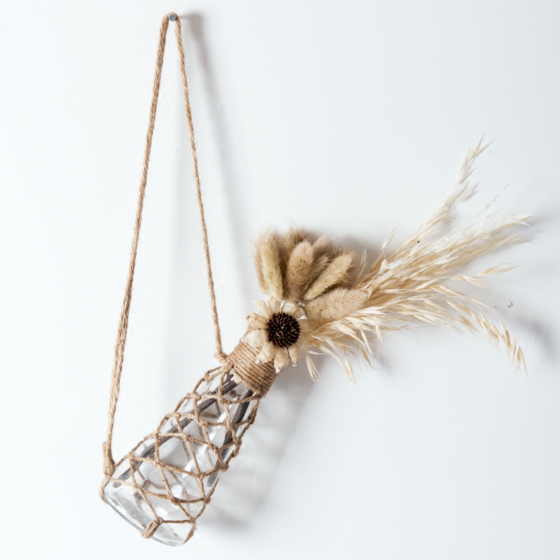 Nordic Glass Suspension Bottle Dry Flower Package Creative Handmade Hemp Rope Woven Retro Brief Water Peels Wall-mounted Decoration Ornaments
