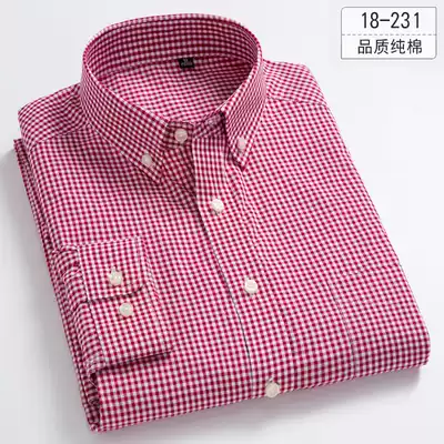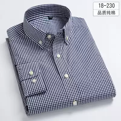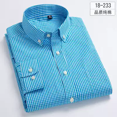 Autumn pure cotton men's long-sleeved shirt thin youth small plaid shirt men's stripes with fat plus size inch clothes