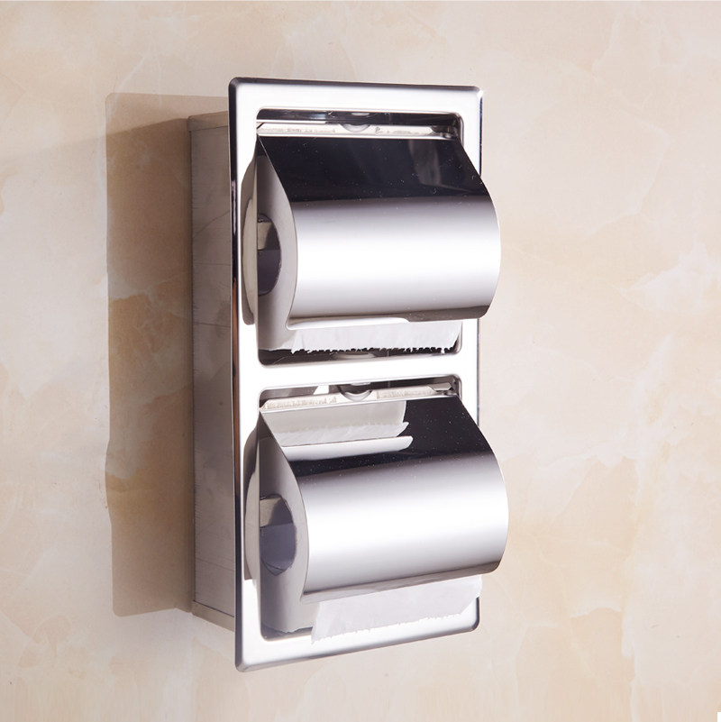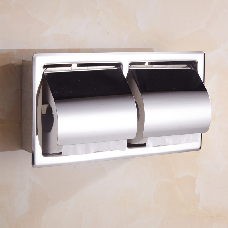 304 stainless steel into the wall embedded double roll toilet paper holder hotel powder room tissue box tissue holder toilet paper holder concealed