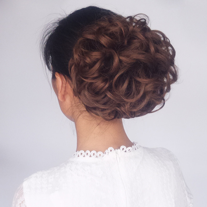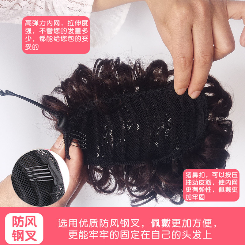 Qipao wig fluffy hair Flowers Retro disc head Buttoned Balls with Blossom Head Bride Disc Hair Emulation Curly Hair Wrap