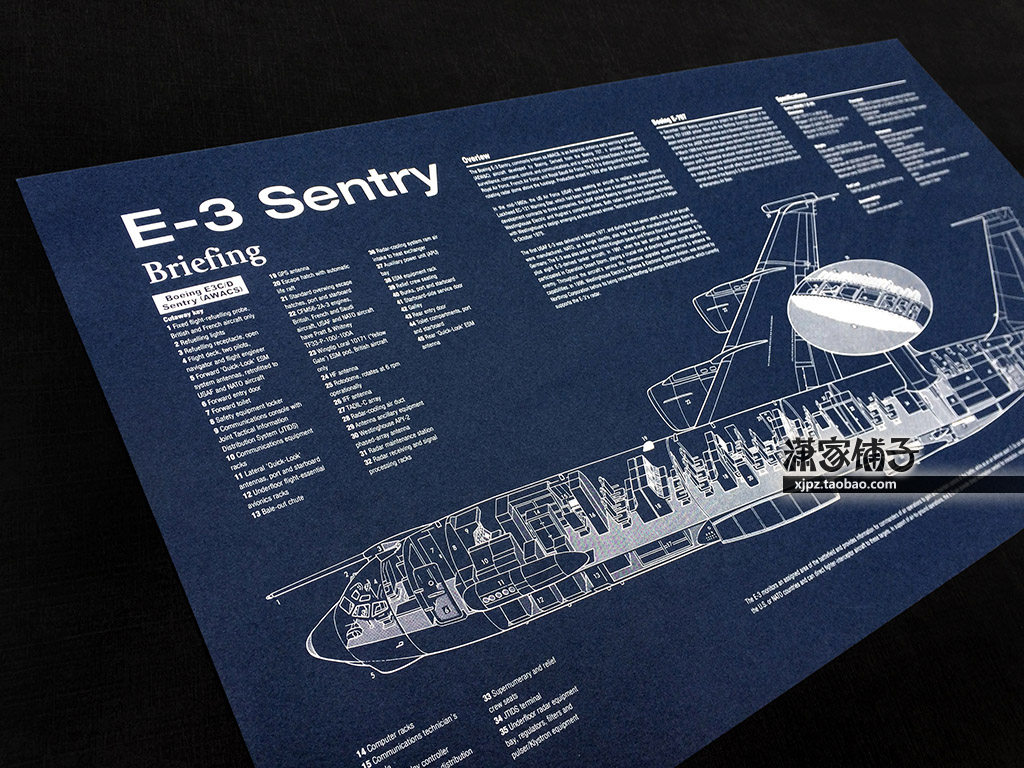E-3D fixed-wing early warning aircraft watchtower (set) command aircraft structure drawing blueprint poster decorative painting