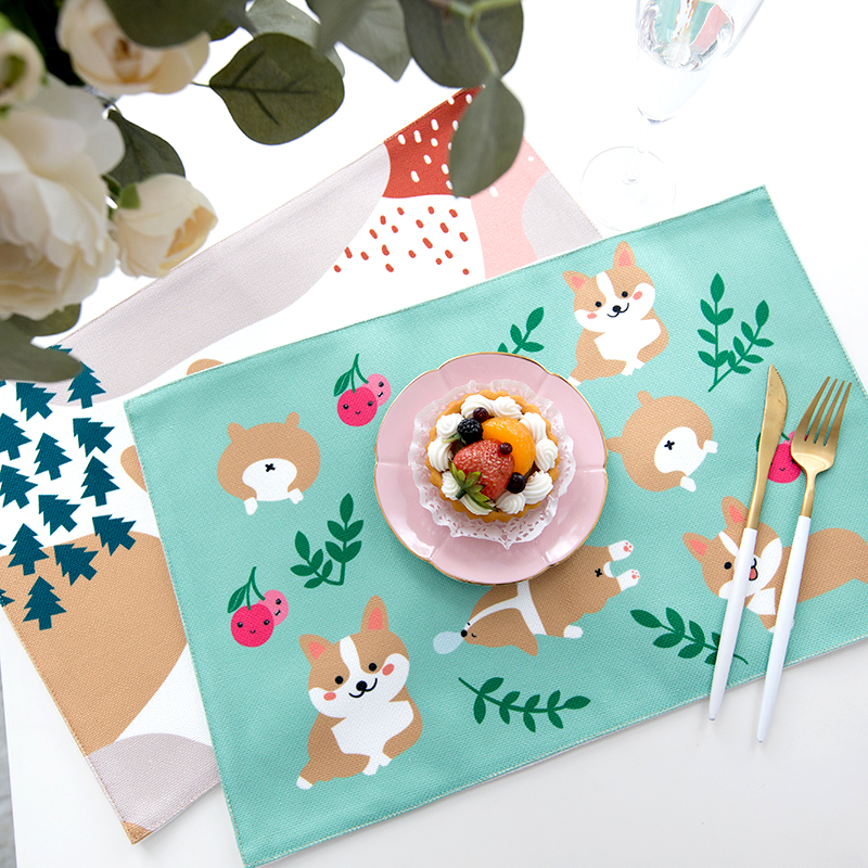 Like house ins placemat Cartoon Corgi dog simple placemat Cartoon placemat tea mat Fabric dining table placemat heat insulation mat