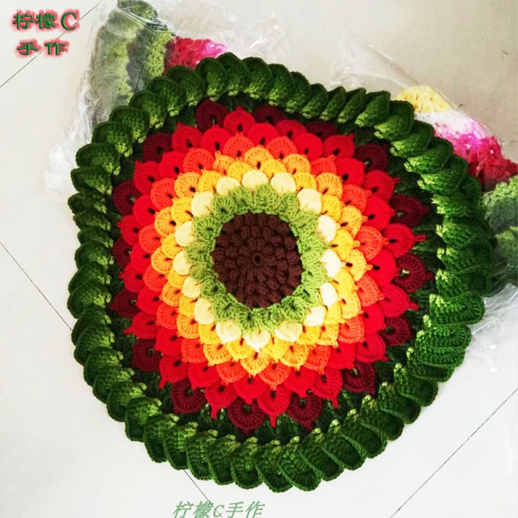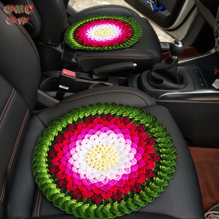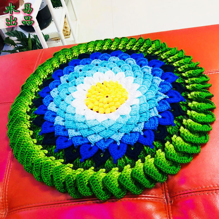 Pure Hand Crochet Wool line sofa cushion Gradual Layer Color Lotus Car Car Seat Cushion Diy Material Bag Film Tutorial