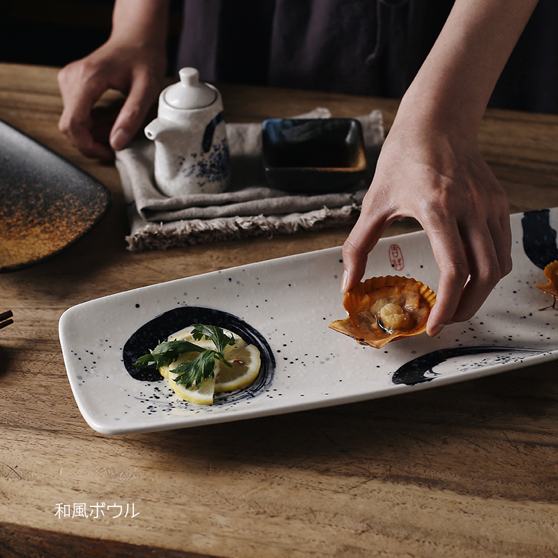 Balloon Flower House Creative Ceramic Sushi Pan Flat Tray Hem Tray Day Type Sashimi Strip Cold Tray Fish Pan Lobster Pan