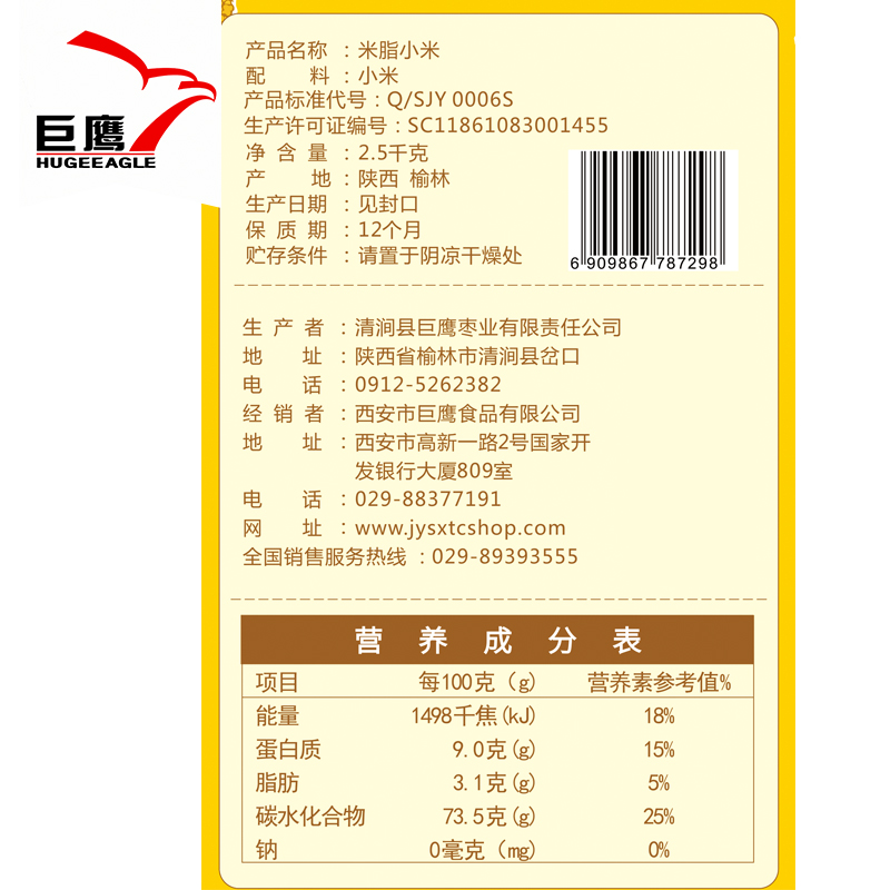 Giant eagle rice fat millet new rice farm yellow millet moon miscellaneous grain millet porridge Shaanxi north specialty 5kg