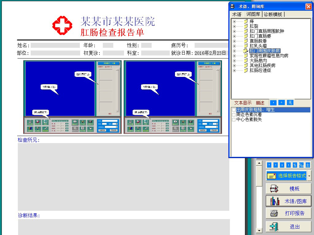 Anorectal Software Anal Colonoscopy Medical History Examination Graphic Image Report System Film Collection Card Footboard Connecting Thread