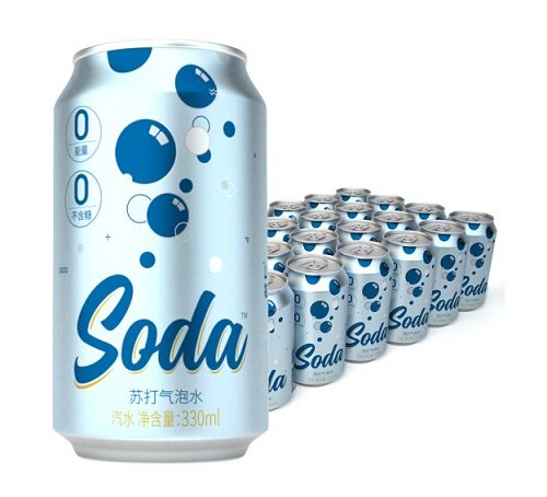 A box of Mingren soda soda drink 330ml * 24 cans of sugar-free bubble water original flavor soup water
