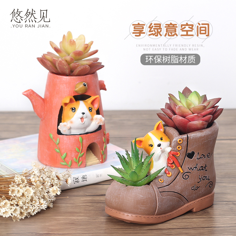 Cute MengMeng Dynamic Koji Puppy Flesh Flower Pot Personality Creative Home Accessories Office Desktop Decoration Decoration