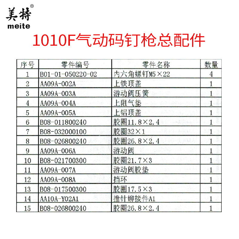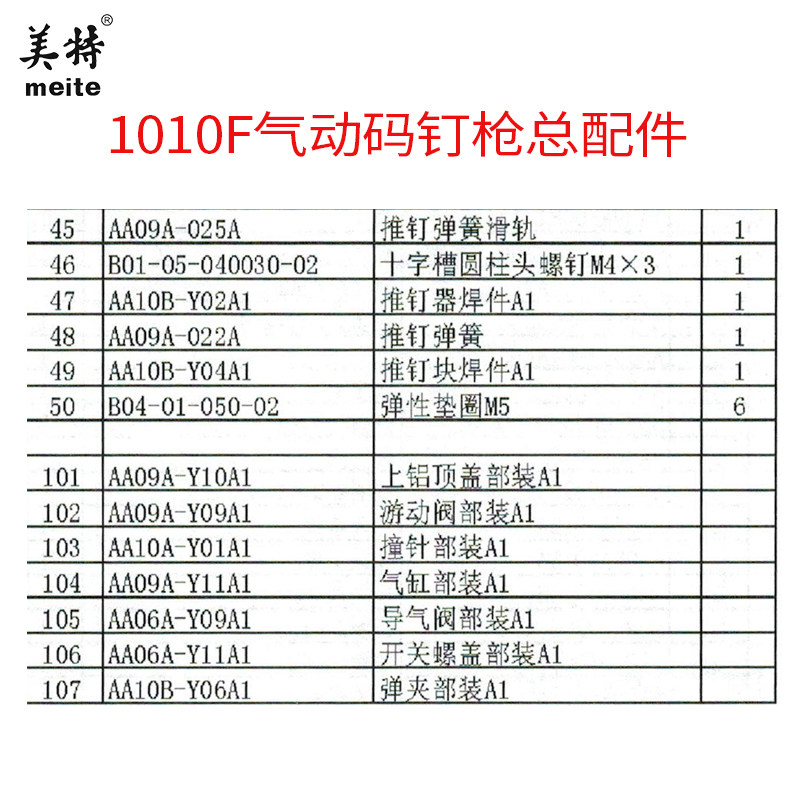 Mette 1010F upper aluminium top cover trigger gun nozzle panel gasket nail slot welding piece tail buckle pushpin spring swimming valve