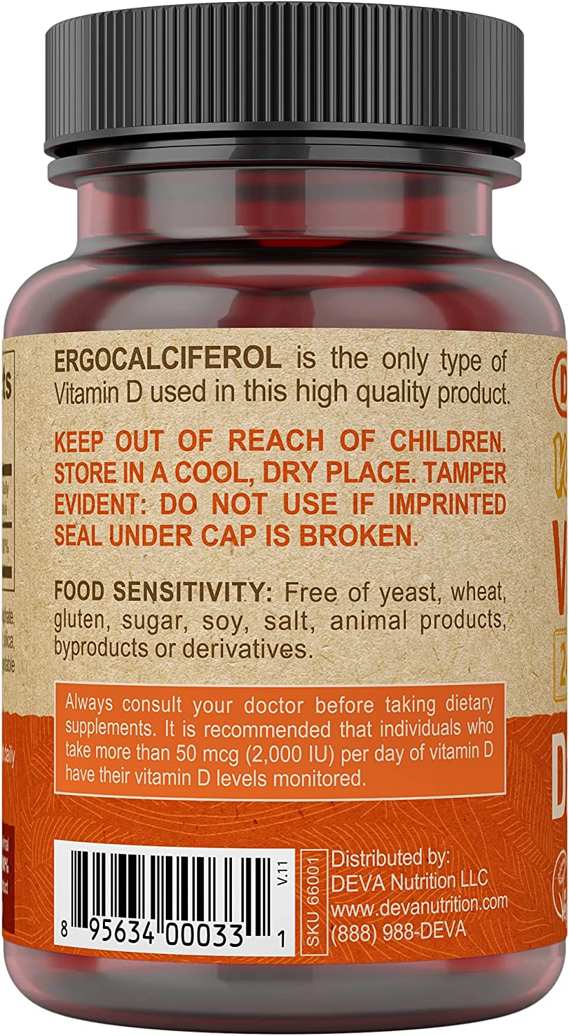 Spot US DEVA Vegan Vitamin D2 tablets 2400iu 90 tablets