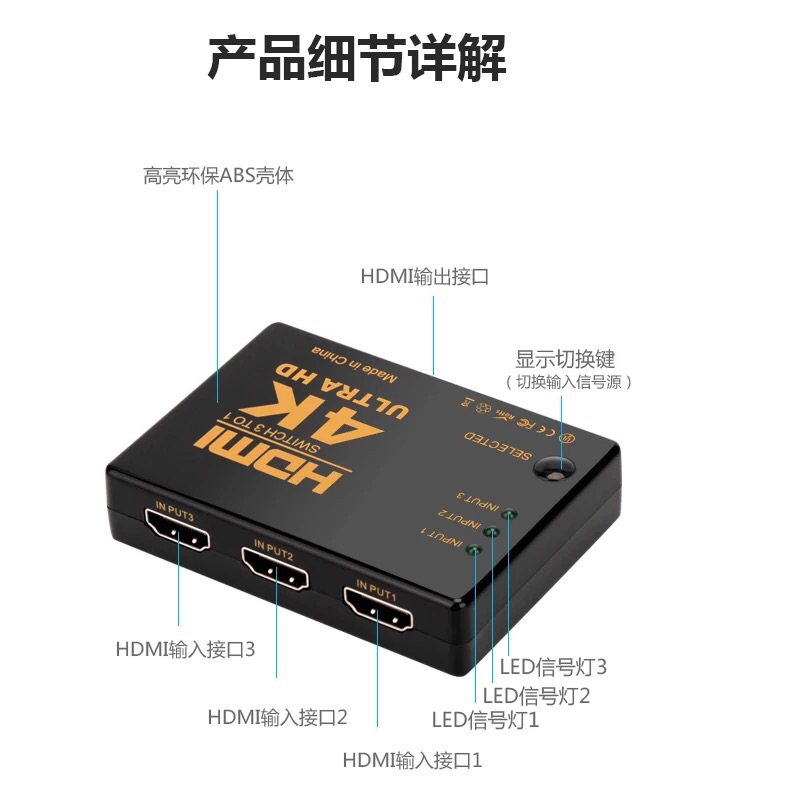 HDMI switcher Remote control 3 in 1 out hdmi Dispenser Three-in HD 4K TV divider-Taobao