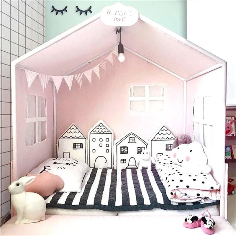 Ins Nordic style cute little house children's bed around baby cotton anti-collision head removable washable cushion pillow bed