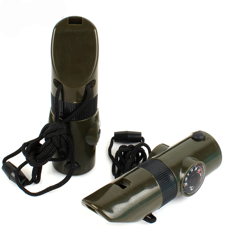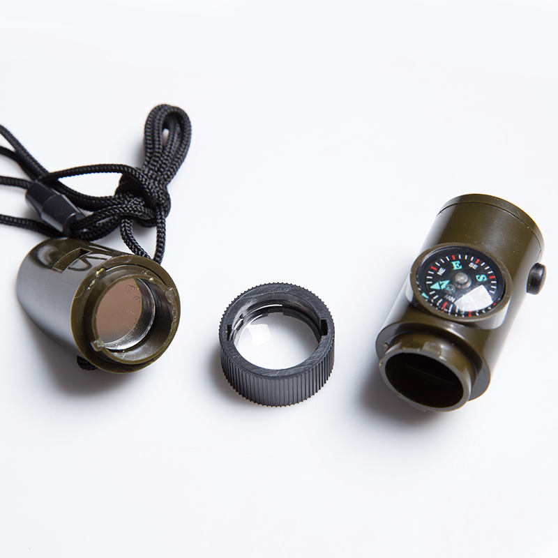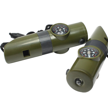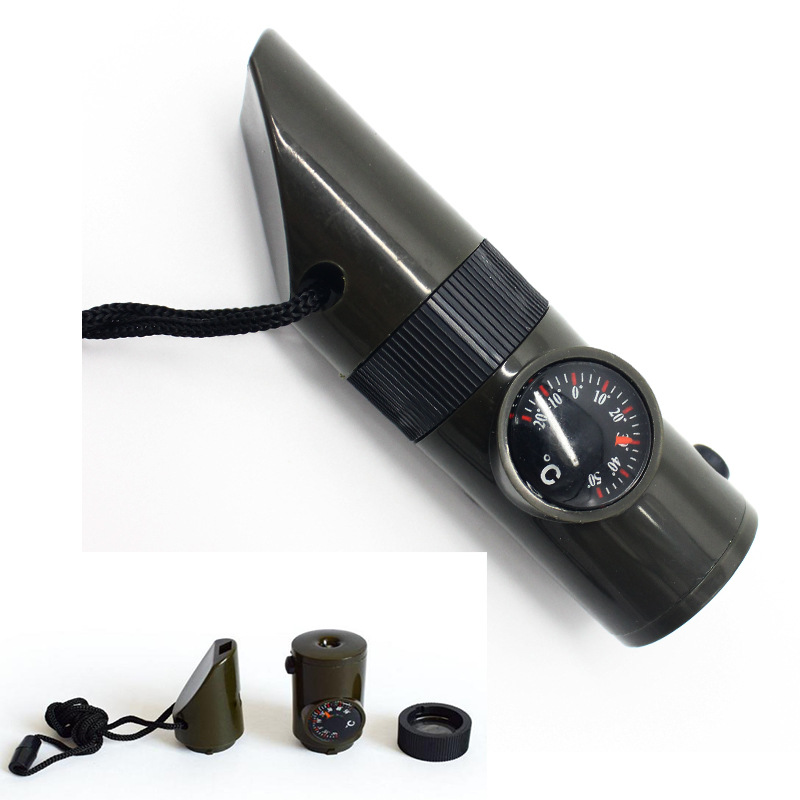 Outdoor camping equipment outdoor supplies multi-function survival whistle LED light thermometer compass magnifying mirror