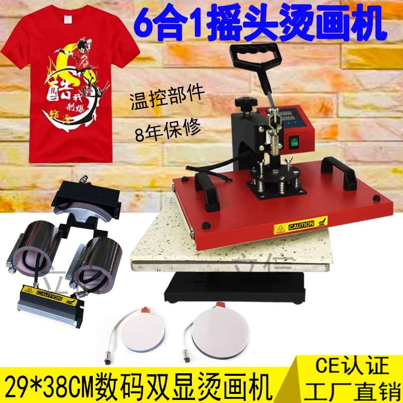 Multifunctional Shaking Head Heat Press Machine Heat Transfer Machine Baking Cup Hat Shirt Hot Stamping Ironing Drilling Shirt Pressing Ironing Machine Lapel
