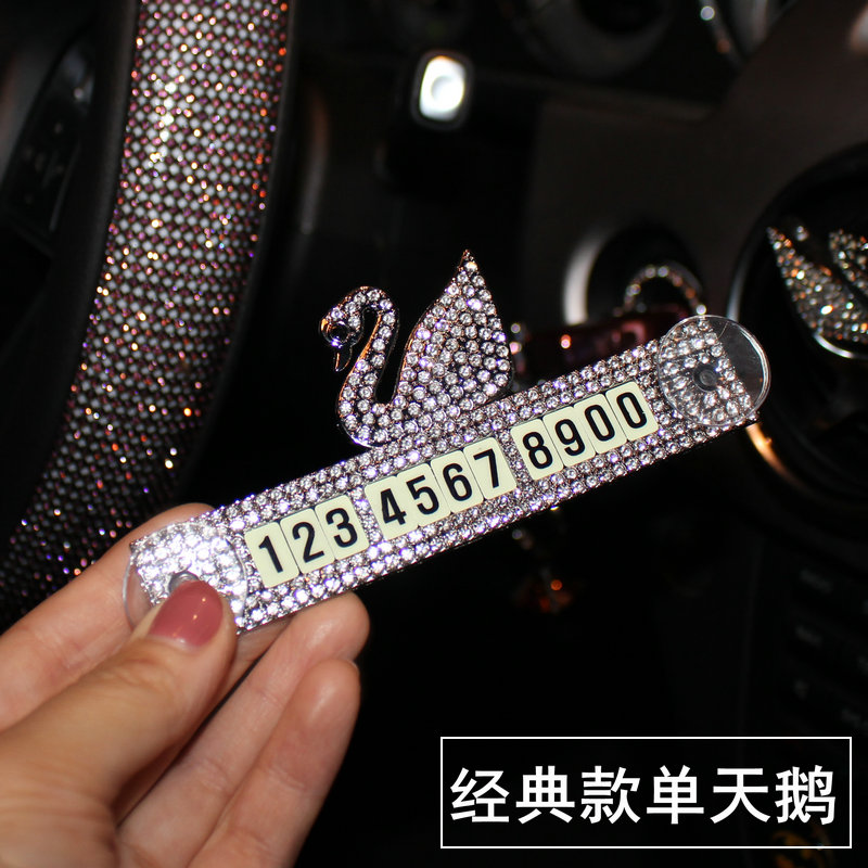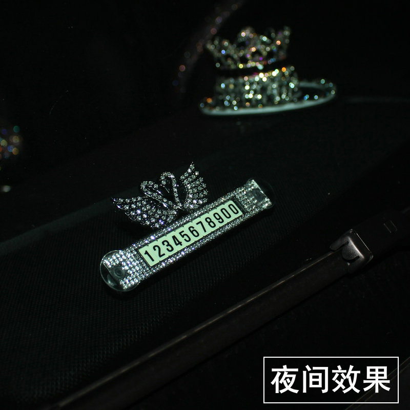Creative Night Car Temporary Parking Card Swan Inlaid Drilling Personality Cute Women's Mobile Phone Number Cards Card Contact