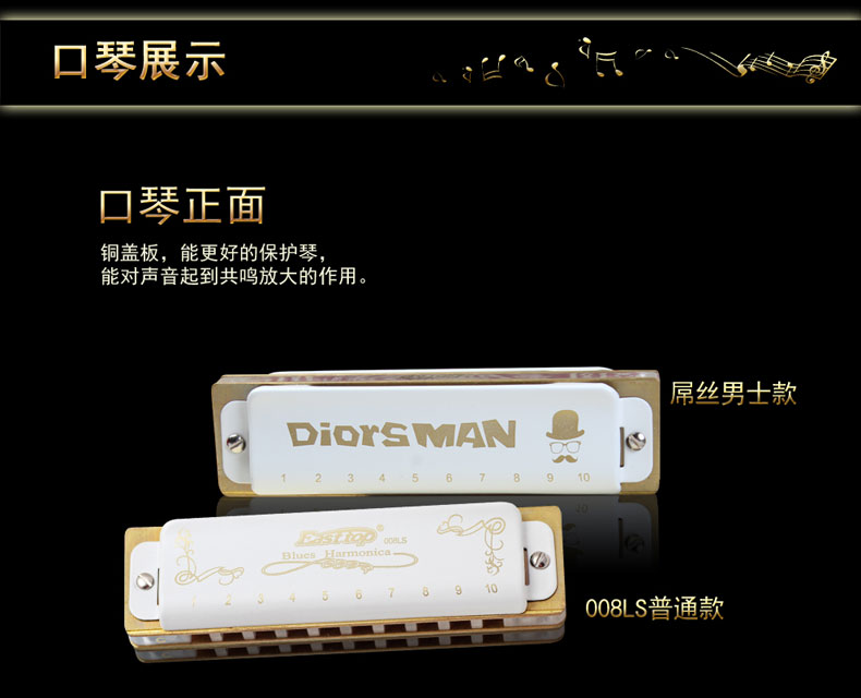 Oriental tripod T008LS white blues blues ten hole film harmonica with only C tone-Taobao