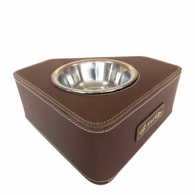 Kaiqutong Leather Basin Dog Bowl Cat Bowl Stainless Steel Pet Single Bowl Large Dog Rice Bowl Teddy Dog Supplies Grain Basin