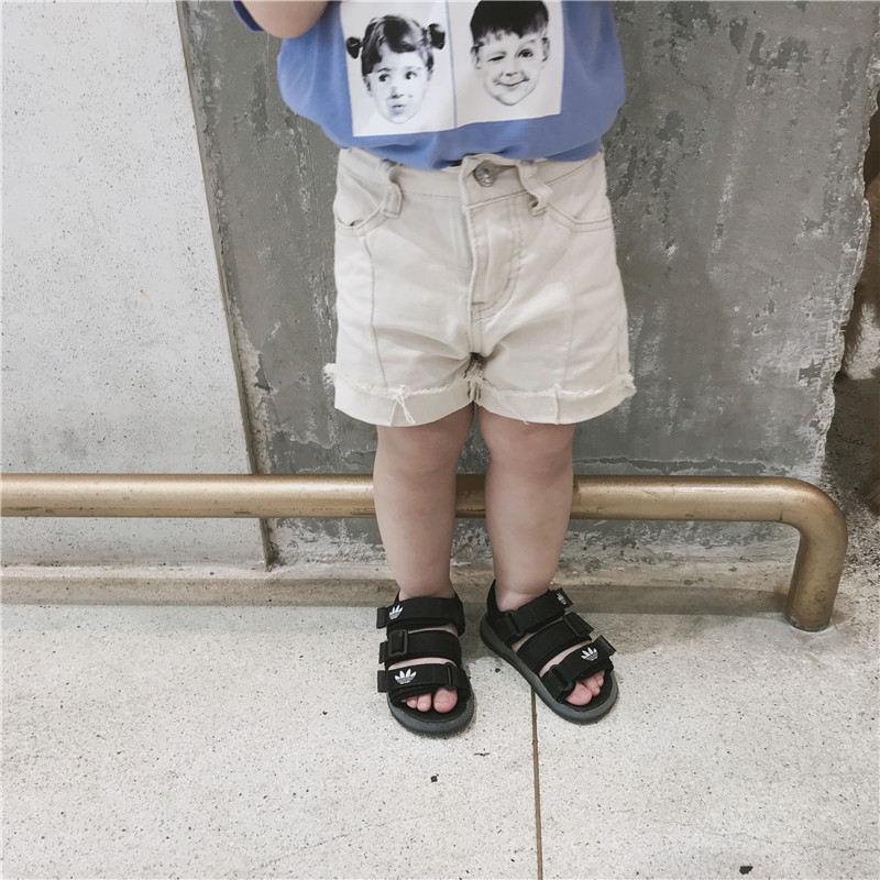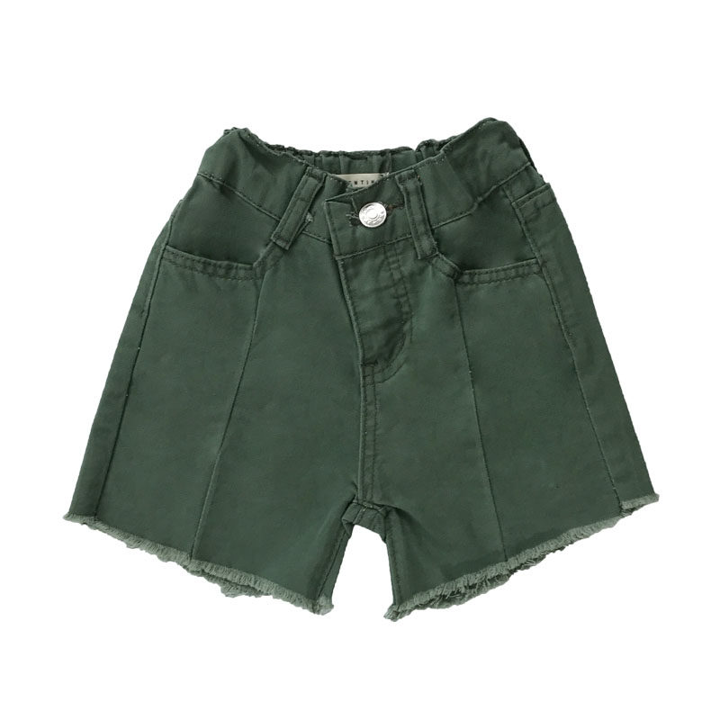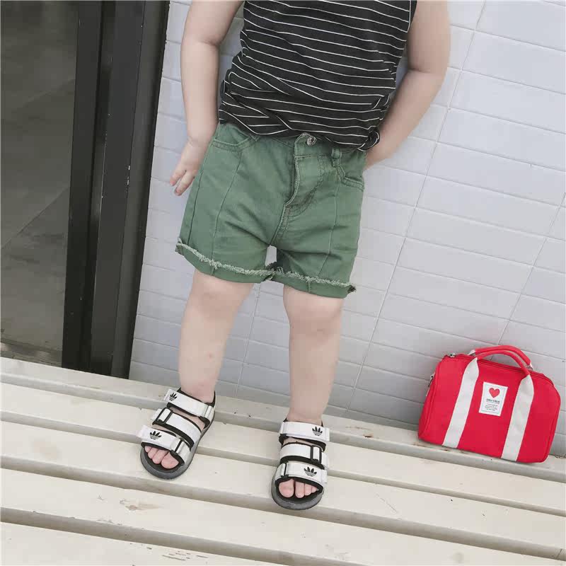 Men's and women's children's rice small fan summer children's clothing Children's raw edge denim shorts Baby cotton stitching rolled-edge pants tide