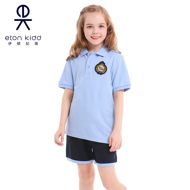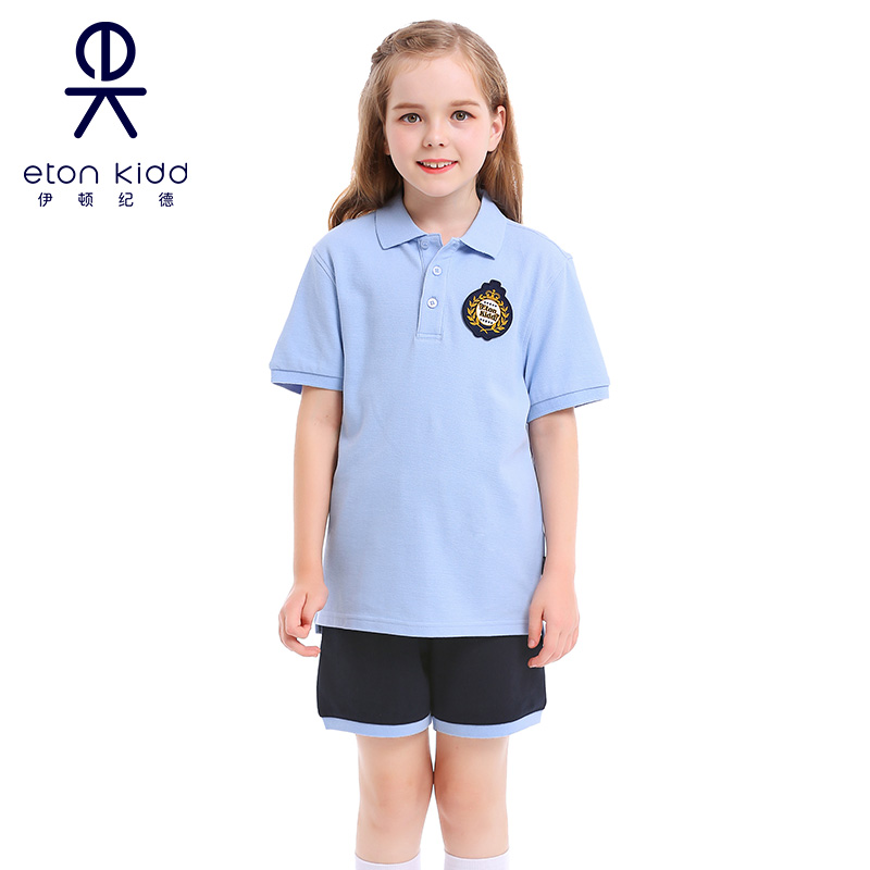 Eaton Guild primary and secondary school uniforms for male and female children Summer light blue short sleeve T-shirt hidden turtshorts sports suit