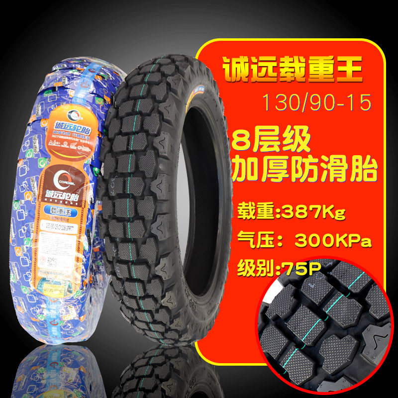 Chengyuan 6-layer thickened wear-resistant 130 90-15 vacuum tire Chengyuan load king 8-layer 130 90-15 non-slip tire Golden Rain Jistong wear-resistant 130 90-15 vacuum tire
