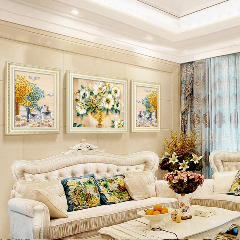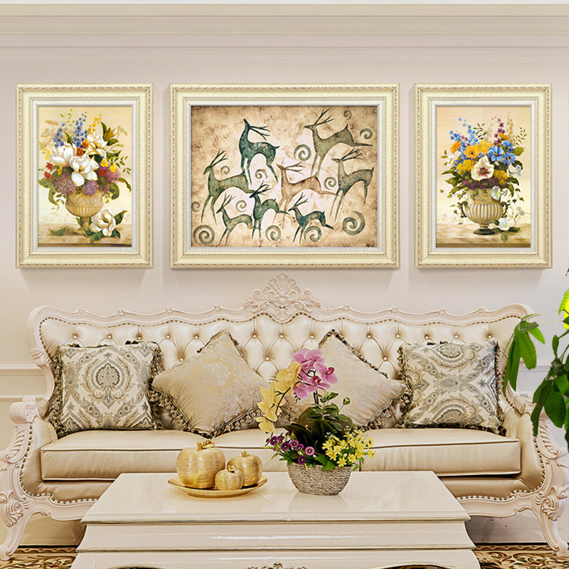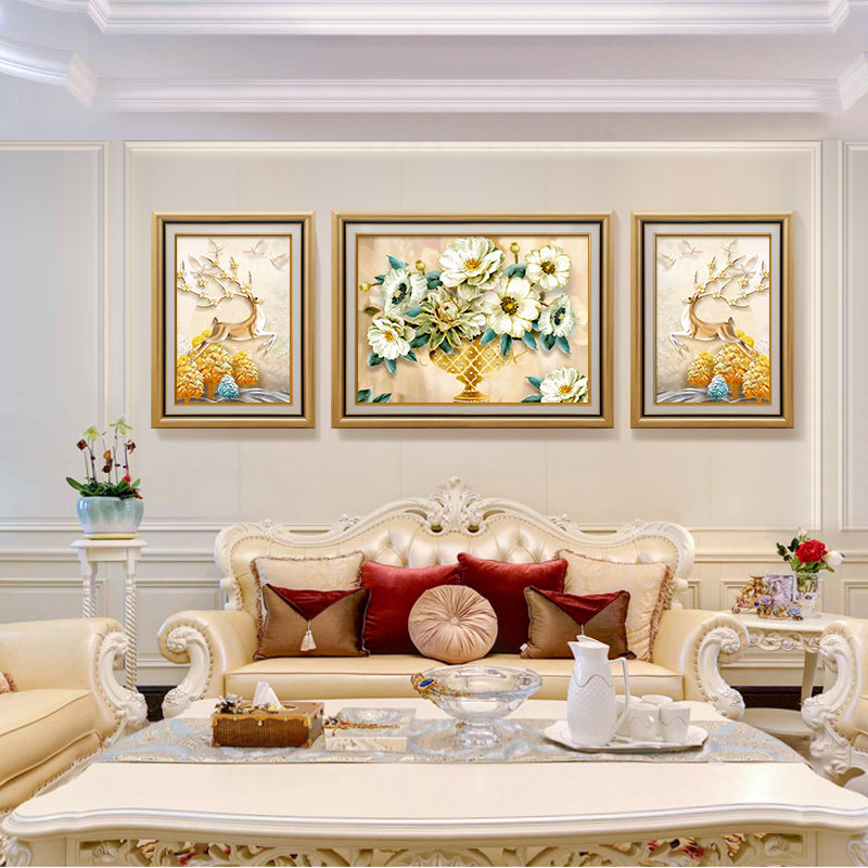 Sofa Background Wall Decoration Painting Eurostyle Murals Triple Hair Treasure Tree Water Elk Wall Painting Living Room Hanging Painting Atmosphere Light Lavish