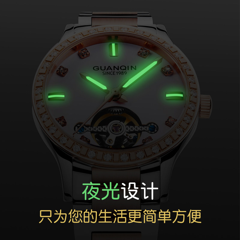 Guanqin watch ladies mechanical watch automatic hollow waterproof couple models stainless steel belt fashion diamond women's watch